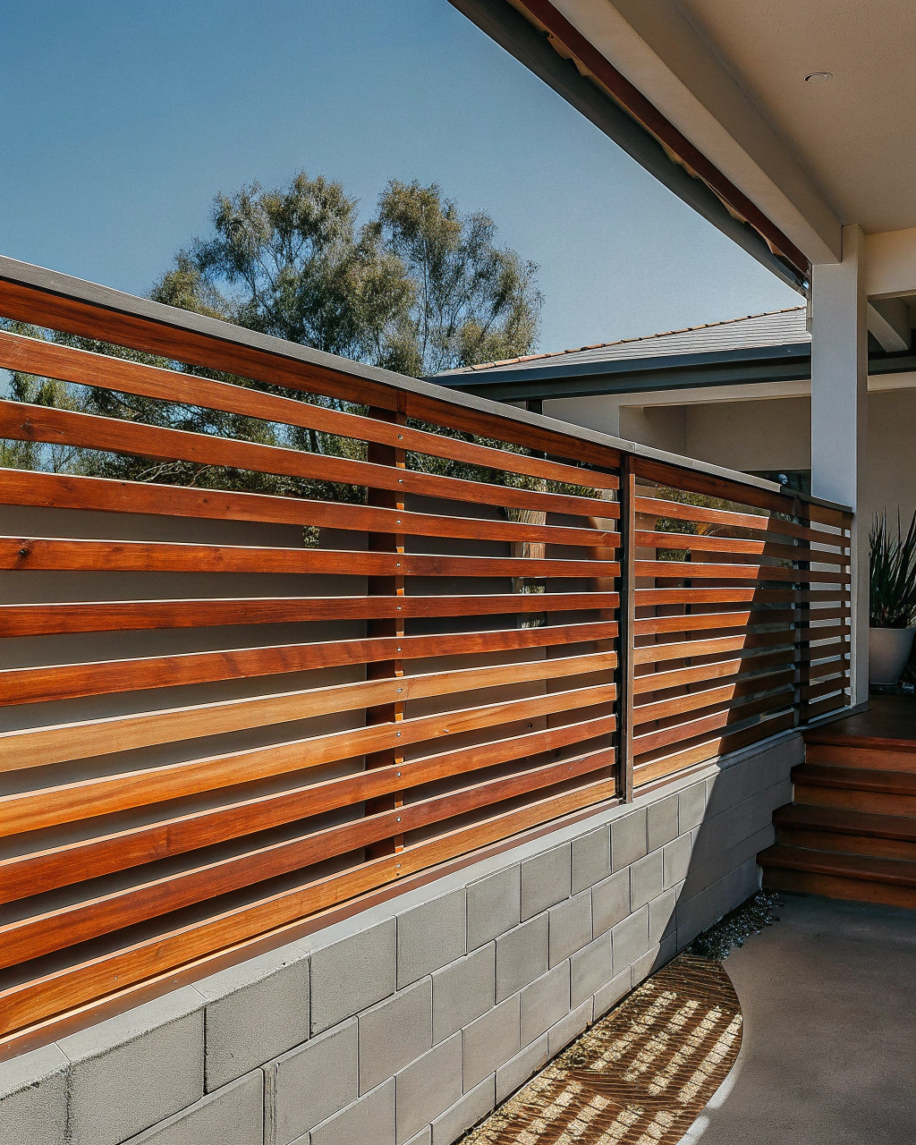 Composite and glass privacy walls need occasional washing only. Timber screening requires annual oiling or staining to maintain appearance and weather resistance. We use marine-grade fixings that resist Gold Coast’s salt air. Proper maintenance schedules depend on material choice and coastal exposure.